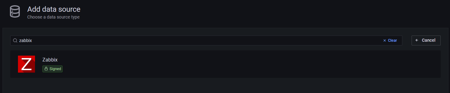 Add data source 버튼을 클릭하고 검색창에 zabbix를 입력합니다.