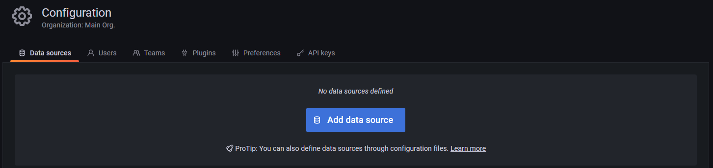 똑같이 Grafana Configuration 메뉴에서 Datasource를 클릭해줍니다.